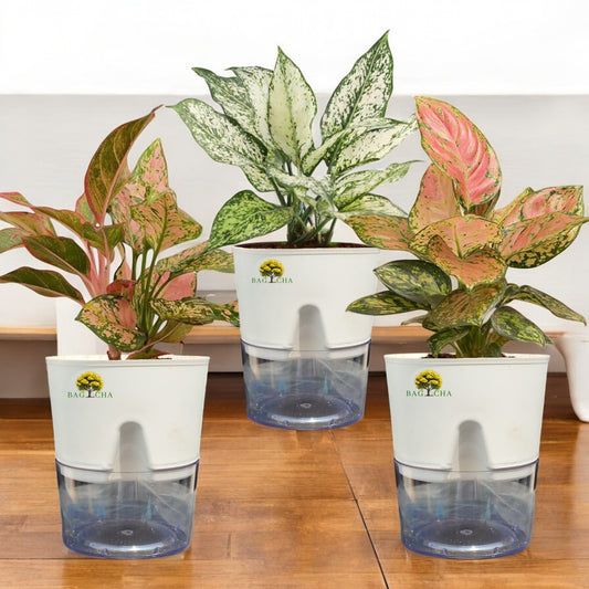 Colourful Aglaonema Family Bundle - Aglaonema Lipstick, Aglaonema Pink Valentine, Aglaonema Snow-White Plant