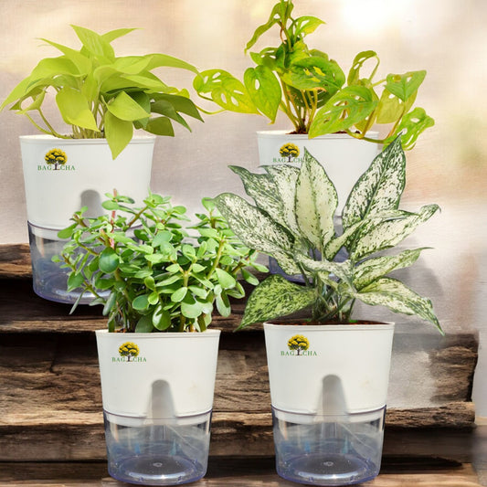 Indoor Plant Bundle - Broken Heart, Golden Money, Aglaonema Snow-White & Lucky Jade